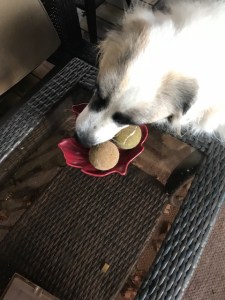 There it was, sitting in the middle of the floor, this brown blob. (NO, it wasn’t that!). It was a tennis ball. It used to be regulation yellow, but now it was gnarly brown. Why? It had gone through the Lewis Treatment.