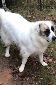 The funniest evidence, however, is coming home from running errands or a similar outing and Lewis meets us at the gate all happy and slobbery but with one little difference – a muddy nose. It sticks out like a red clown nose only it’s brown, but it’s just as goofy. Suddenly it’s emergency inventory time. What has mega-dog purloined now and processed it with….the Lewis Treatment? It matters not to whom the object belongs – once obtained, most assuredly buried.