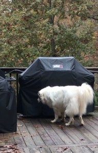 No, Lewis isn’t a male stripper. Then again, he does run around without clothes, so I suppose he meets the technical definition. Alas, he does in reality have a bad habit. Of course, Lewis has lots of bad habits, but his aggressive interaction with Chip and Dale stands out among his character faults. He chases them, chipmunks that is. And unfortunately, he’s pretty good at it. Thankfully being good at something doesn’t necessarily mean being successful at it. (Just ask anyone who fishes…or any parent). That’s the case with Lewis and his escapades with Chip and Dale. Just like the cartoon version, the local chipmunks manage to outwit the great white dog on a daily basis. Not only is he Pluto to their Chip and Dale, he manages to be Goofy as well.
